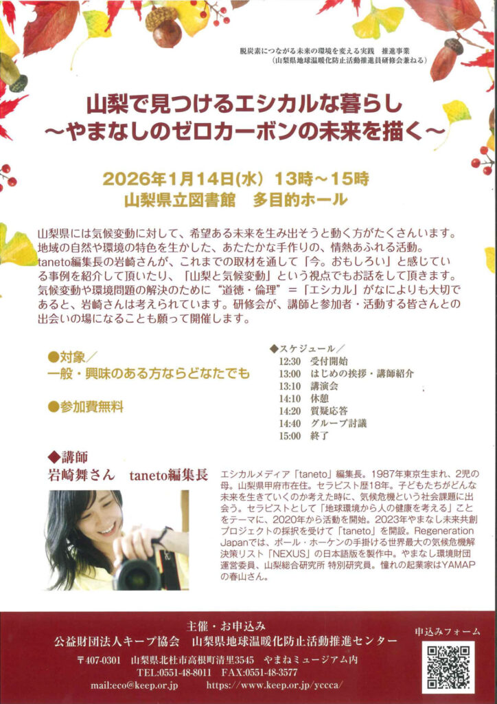 【2026年1月14日開催】山梨で見つけるエシカルな暮らし|気候変動と未来を考える無料講演会